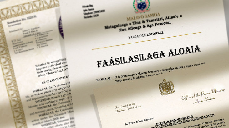 „Ich möchte den Ehrenamtlichen Scientology Geistlichen meine Dankbarkeit dafür aussprechen, dass Samoa als fester Bestandteil zu den ausgewählten Ländern gehört, die Ihr Ausbildungsprogramm für Hilfsaktionen erhält.“ – Premierminister, Samoa